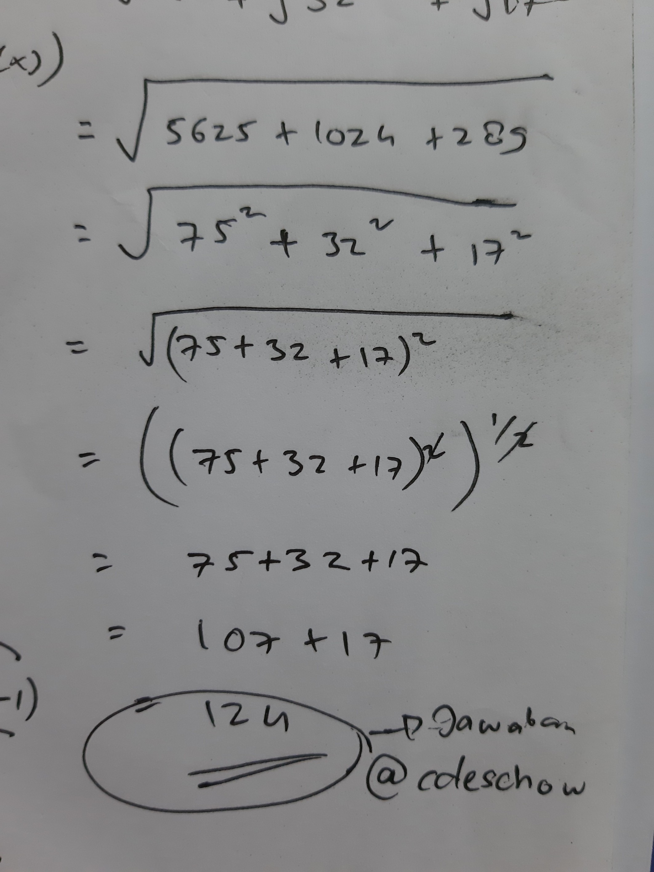 Namun secara logika bilangan 289 lebih dekat ke 400 maka kemungkinan akar pangkat 2 dari 289 adalah 17. Maka panjang sisi tersebut adalah …. Berikut ini hasil akar pangkat dua yang tidak tepat adalah. Biarkan b = basis nomor. Pangkat dua dari 1 sampai 9 harus kita hafalkan dan diingat. Untuk menemukan akar kuadrat dari 289,. Ada beberapa cara yang dapat dilakukan untuk menentukan akar pangkat dua dari sebuah bilangan kuadrat. Akar kuadrat dari 289 adalah 17. Salah satu cara yang dilakukan adalah . Tentukan akar pangkat 2 dari 1225. Sekarang lihat angka belakang dari angka 289. Tentukan hasil akar pangkat dua d a. 289 terbesar dari 100 dan kurang dari 400.